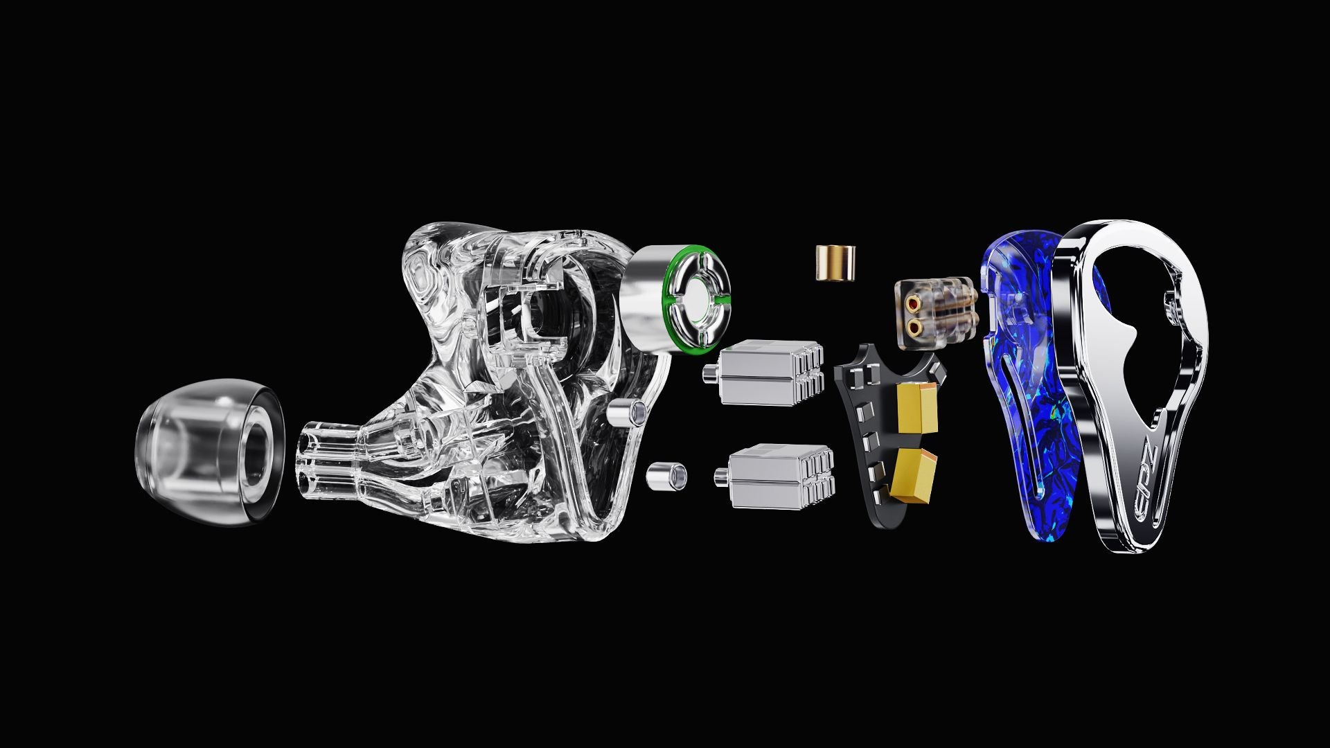 K9 uses 1DD (10mm LCP+PU) + 8 custom balanced armatures. The dynamic driver anchors bass weight, and the BA array supports vocal detail and treble layering.